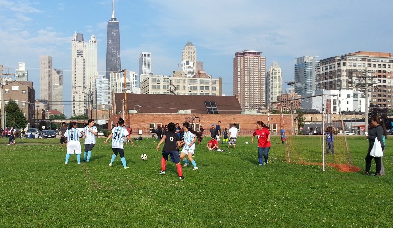 Las cuatro canchas de la Liga Deportiva Nueva Union están rodeadas de los edificios más conocidos de Chicago, convirtiendo a esta competencia en una de las más atractivas para jugar los lunes.