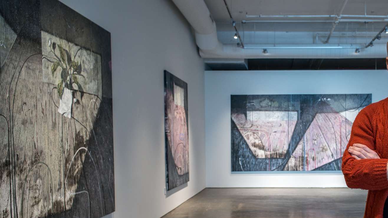 Quienes seguimos su obra, al menos tangencialmente, hemos podido apreciar como va (des)habitando la composición. Primero eran rostros, cuerpos, torsos, homúnculos desahuciados en una habitación, cuerpos escultóricos que crecen o se derriten mostrando su esqueleto de alambrón; luego la luz exterior que se filtra, creando geometrías imaginarias, fue transformando su obra en la convergencia de dos planos surreales. En uno, el detalle del espacio abandonado, en el que aún quedan reminiscencias: cortinas, cables, jarrones como naturalezas muertas; en otro que se le superpone, construyendo una suerte de anticipación, la falsa arquitectura de sombras, el polvo y el tiempo trazan su juego de abstracciones.