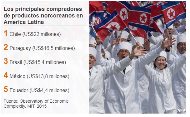 El principal comprador de bienes norcoreanos en la región es Chile, que importó $22 millones de productos de esa nación en 2015, en especial productos de hierro y autos.