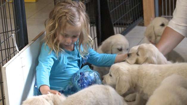 La niña y su madre, Heather, fueron voluntarias en Golden Opportunities for Independence, una granja que entrena perros de servicio. Heather pensó que sería una gran experiencia para Caleigh, ya que le encantan los cachorros. Poco sabía esta madre que su hija estaba a punto de enfrentar una situación angustiosa, que manejó como un profesional.