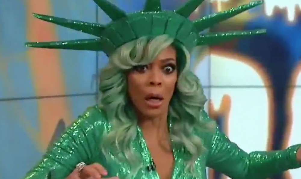 Wendy Williams estaba celebrando Halloween durante su programa el día de hoy en un disfraz de la Estatua de la Libertad cuando de repente perdió el conocimiento y se cayó.