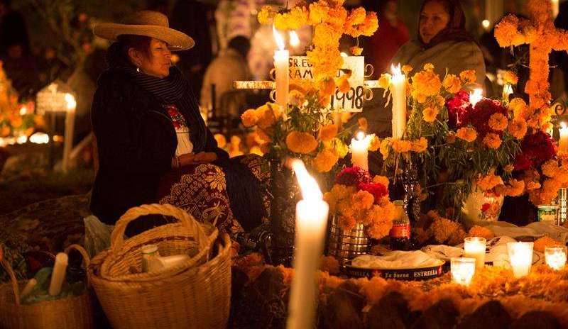 En el panteón de Tzurumútaro, un pueblo del municipio de Pátzcuaro del estado de Michoacán, centenares de personas pasan la noche a la intemperie, cobijados por sus familiares muertos, a quienes velan, e incluso hablan, durante toda la noche.