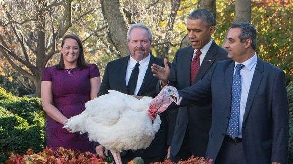 El presidente Obama "perdona" el Día de Acción de Gracias nacional en el Rose Garden en la Casa Blanca en Washington, D.C., el 25 de noviembre de 2015. Crédito: Nicholas Kamm, AFP / Getty Images)