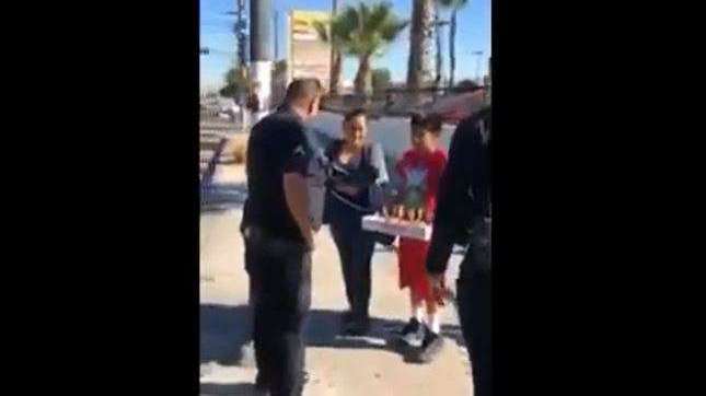 Una mujer y sus dos hijos, al parecer de origen mexicano, se encontraban vendiendo paletas en una avenida de Los Ángeles, cuando fueron gratamente sorprendidos por tres policías que tuvieron un generoso gesto en Thanksgivig Day