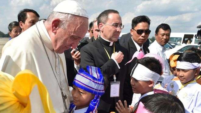 Se espera que el Papa se reúna con la líder de facto del país, la cuestionada Premio Nobel de la Paz Aung San Suu Kyi, y con el jefe del ejército, el verdadero centro de poder en el país.
