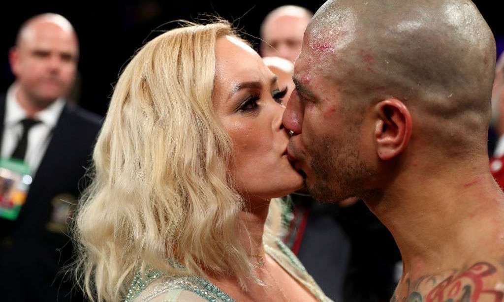 Miguel Cotto y el beso a su esposa Melissa Guzmán Al Bello/Getty Images Crédito: Getty Images