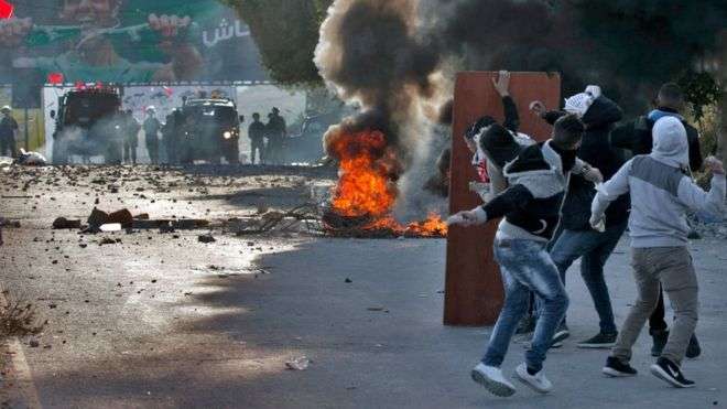 Las protestas fueron convocadas por grupos palestinos, que llamaron a un “Día de la ira” en protesta por la decisión del presidente estadounidense Donald Trump de reconocer a Jerusalén como la capital de Israel.