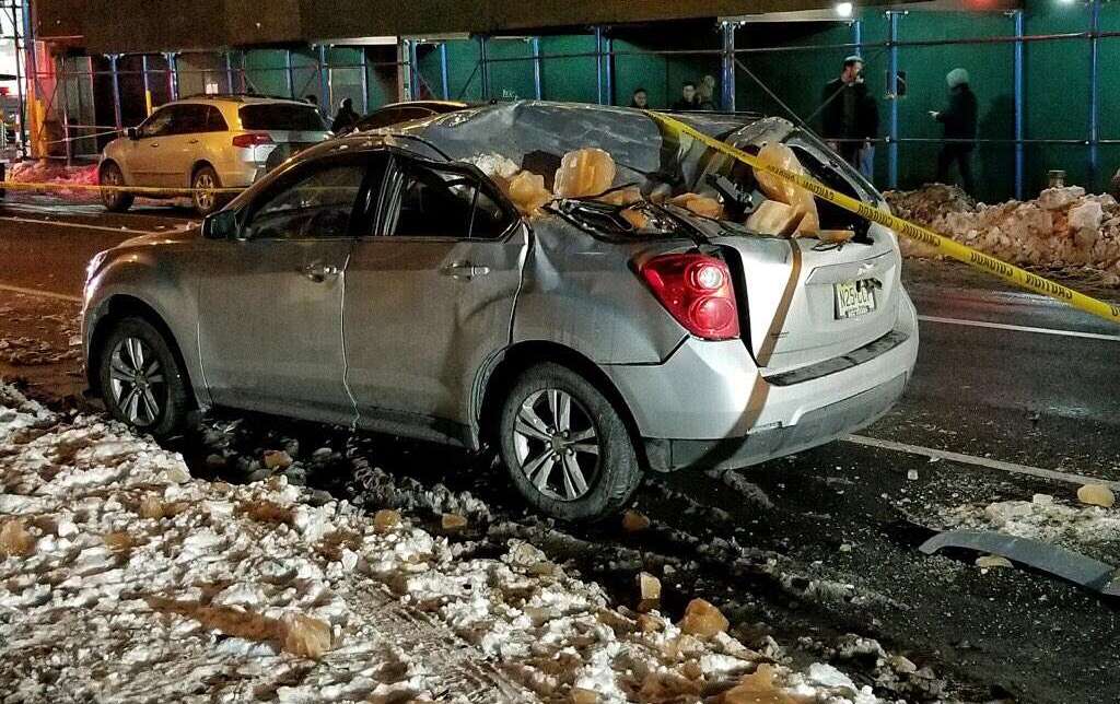 El vehículo impactado por un trozo de hielo en SoHo.
