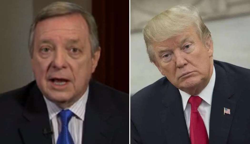 El presidente tuiteó sobre el demócrata Dick Durbin. Crédito: Captura CBS / Getty Images