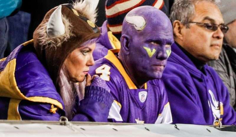 Aficionados de los Minnesota Vikings sintetizan con sus rostros la actitud que a una semana del Super Bowl permea en Minneapolis contra los Philadelphia Eagles. (Foto: EFE/EPA/JUSTIN LANE) Crédito: JUSTIN LANE | EFE/EPA