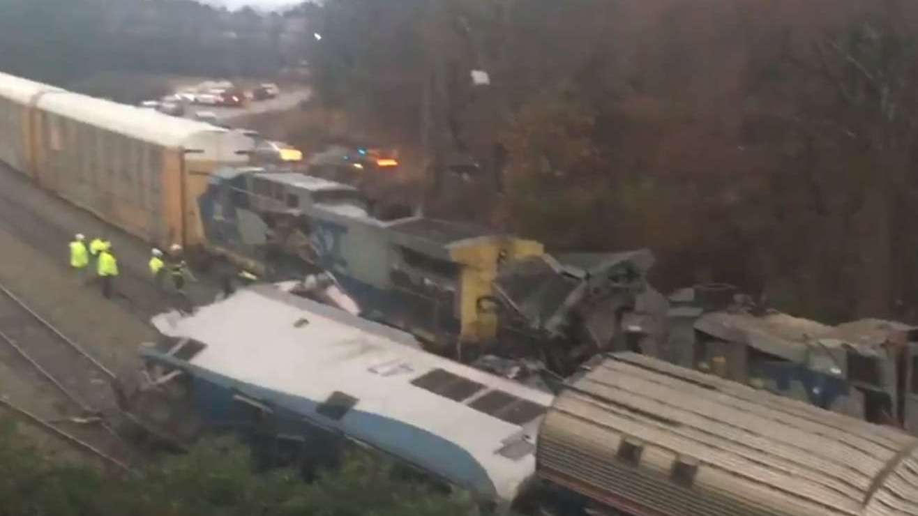 Un tren de Amtrak que iba de Nueva York a Miami colisionó con un tren de carga la madrugada del domingo, matando al menos a dos personas y dejando heridas al menos a otras 70.