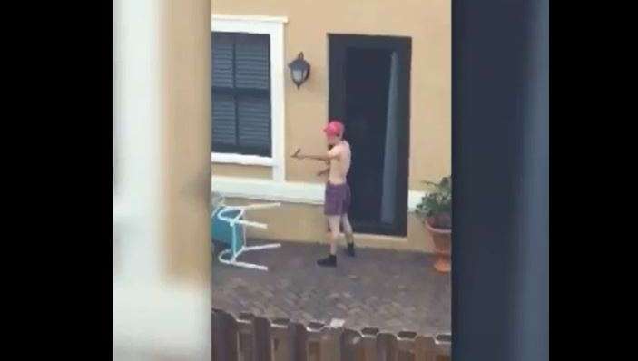 Uno de sus vecinos captó al joven disparando una pistola en el jardín de su casa con una gorra de Make America Great Again