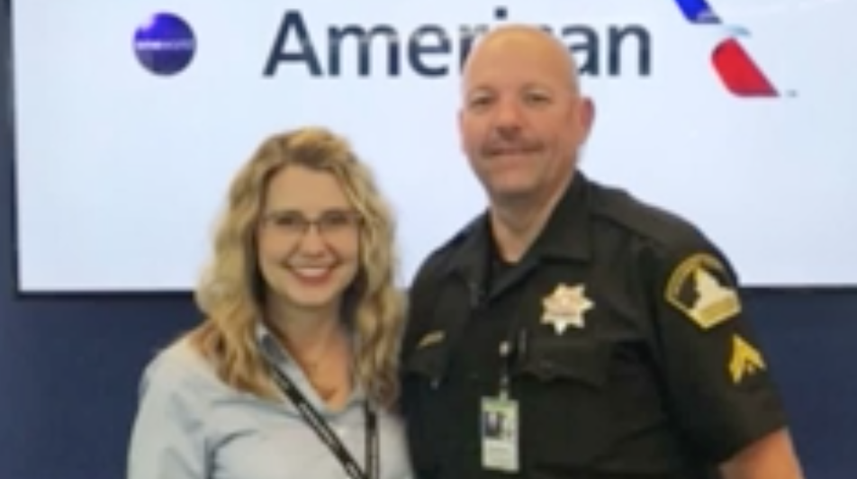 La agente de AA y el sheriff del aeropuerto de Sacramento evitaron una posible tragedia. Crédito: Fox/screenshot