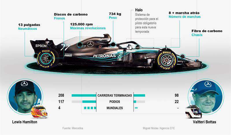 La escudería Mercedes presentó su monoplaza W09 EQ Power+ Crédito: EFE