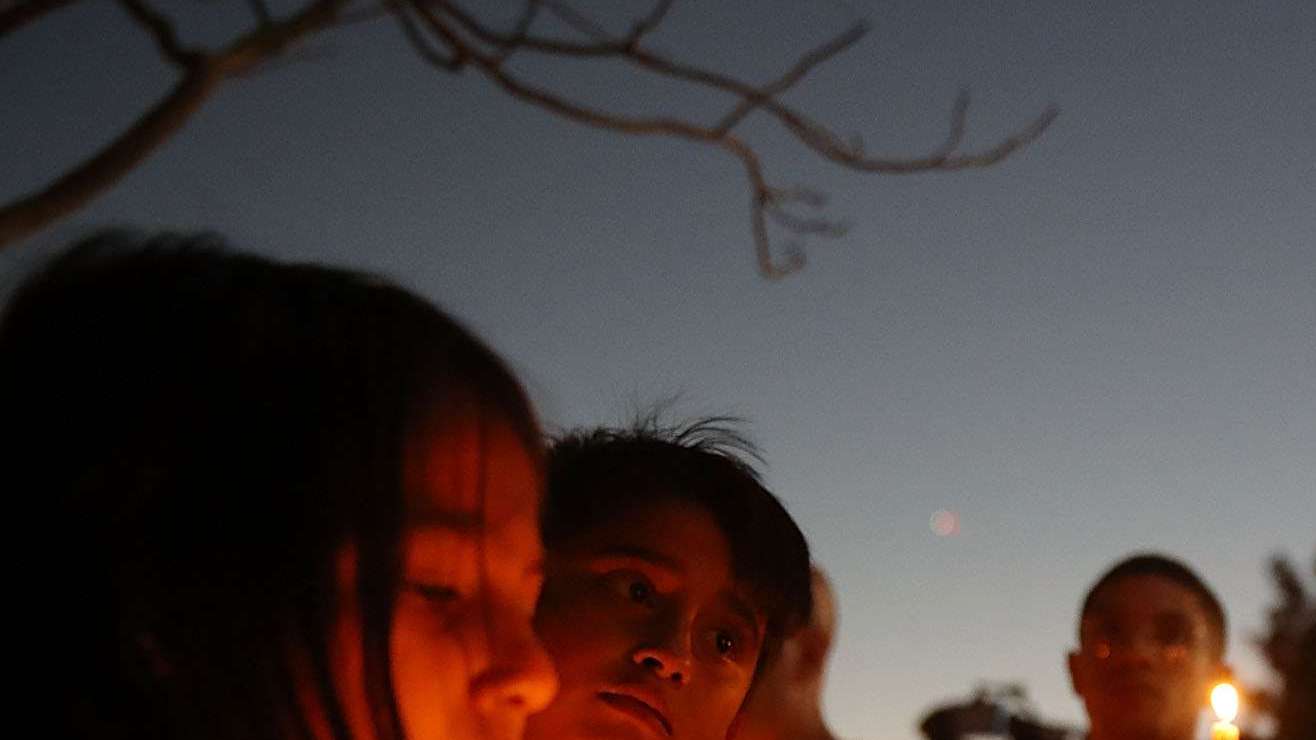 Dolientes reunidos en el servicio conmemorativo para las víctimas del tiroteo en Parkland