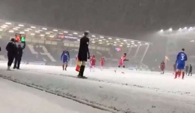 El partido entre los clubes Peterborough y Walsall de la League One inglesa (tercera división) se llevó a cabo en el ABAX Stadium mejor conocido como London Road en medio de condiciones realmente adversas que impuso una espectacular nevada.