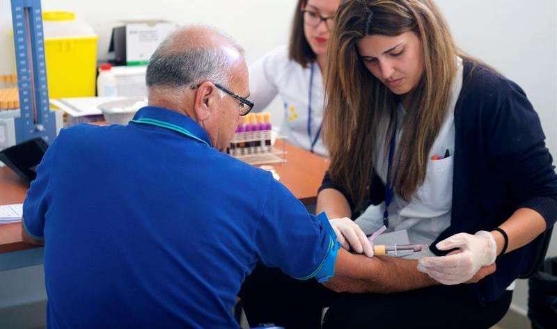 Unas enfermeras realizan pruebas a un paciente con diabetes. Crédito: EFE
