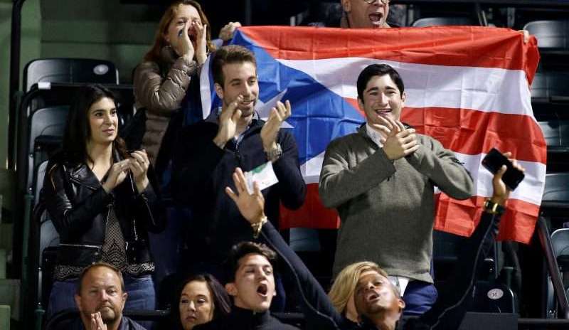 Fans de la boricua Monica Puig durante el partido contra la danesa Caroline Wozniacki en el Miami Open. (Foto: EFE/EPA/RHONA WISE) Crédito: RHONA WISE | EFE/EPA