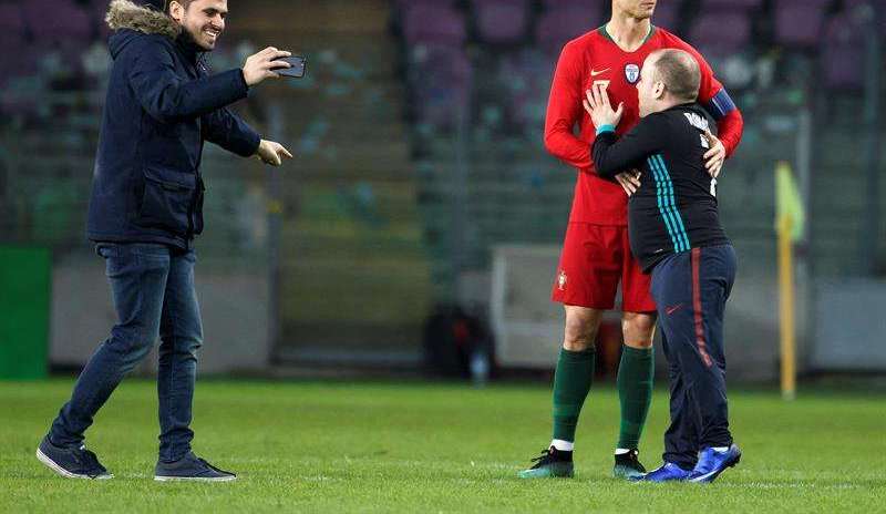 La nota de los partidos amistosos del lunes fue que Portugal no pudo librar la aduana de Holanda ni con Cristiano Ronaldo en su ataque. Y fue precisamente un acontecimiento que involucró a CR7 el que se llevó todos los reflectores pues además de ser besado por un espontáneo (como simple distractor para los cuerpos de seguridad, aunque siempre cámara en mano), otro le abrazó al tiempo en que le mostraba sus calzones.