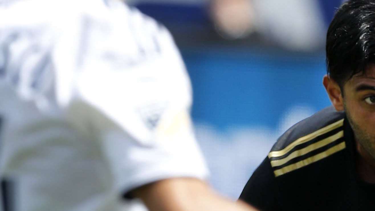 Carlos Vela, delantero del LAFC, hizo de esta forma su segundo gol contra el Galaxy en el primer derbi angelino. Fue en una causa perdida. Crédito: EFE