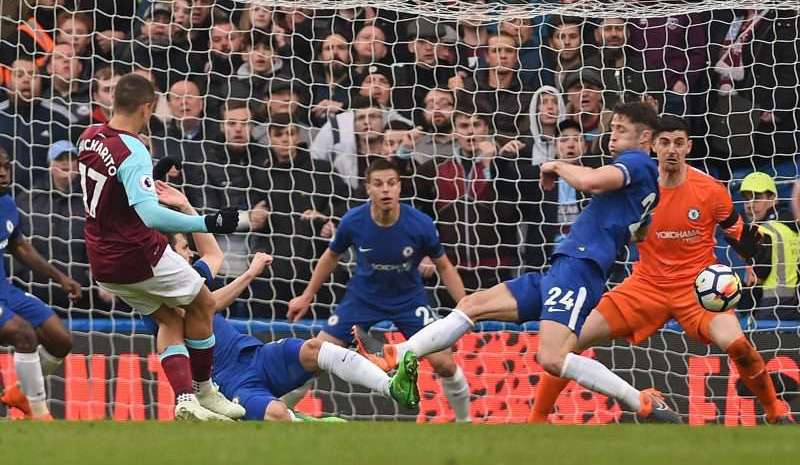 El mexicano del West Ham Javier 'Chicharito' Hernández y su gol frente al Chelsea este domingo en Stamford Bridge. (Foto: EFE/EPA/GERRY PENNY) Crédito: GERRY PENNY | EFE/EPA