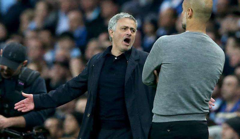 José Mourinho, técnico del Manchester United y Pep Guardiola, técnico del Manchester City