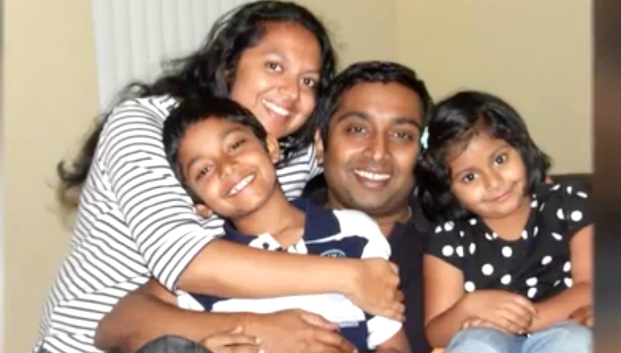El aviso identificó a la familia como esposo y esposa, Sandeep y Soumya Thottapilly, y su hijo Siddhant, de 12 años, y Saachi, su hija de 9 años.