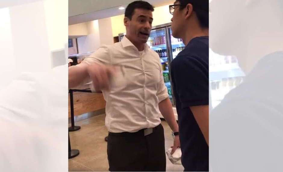También se puede escuchar a otros clientes acudir en ayuda de aquellos que son atacados verbalmente. Una mujer lo llamó “ignorante” y sugirió que “no debería permitírsele estar aquí”.