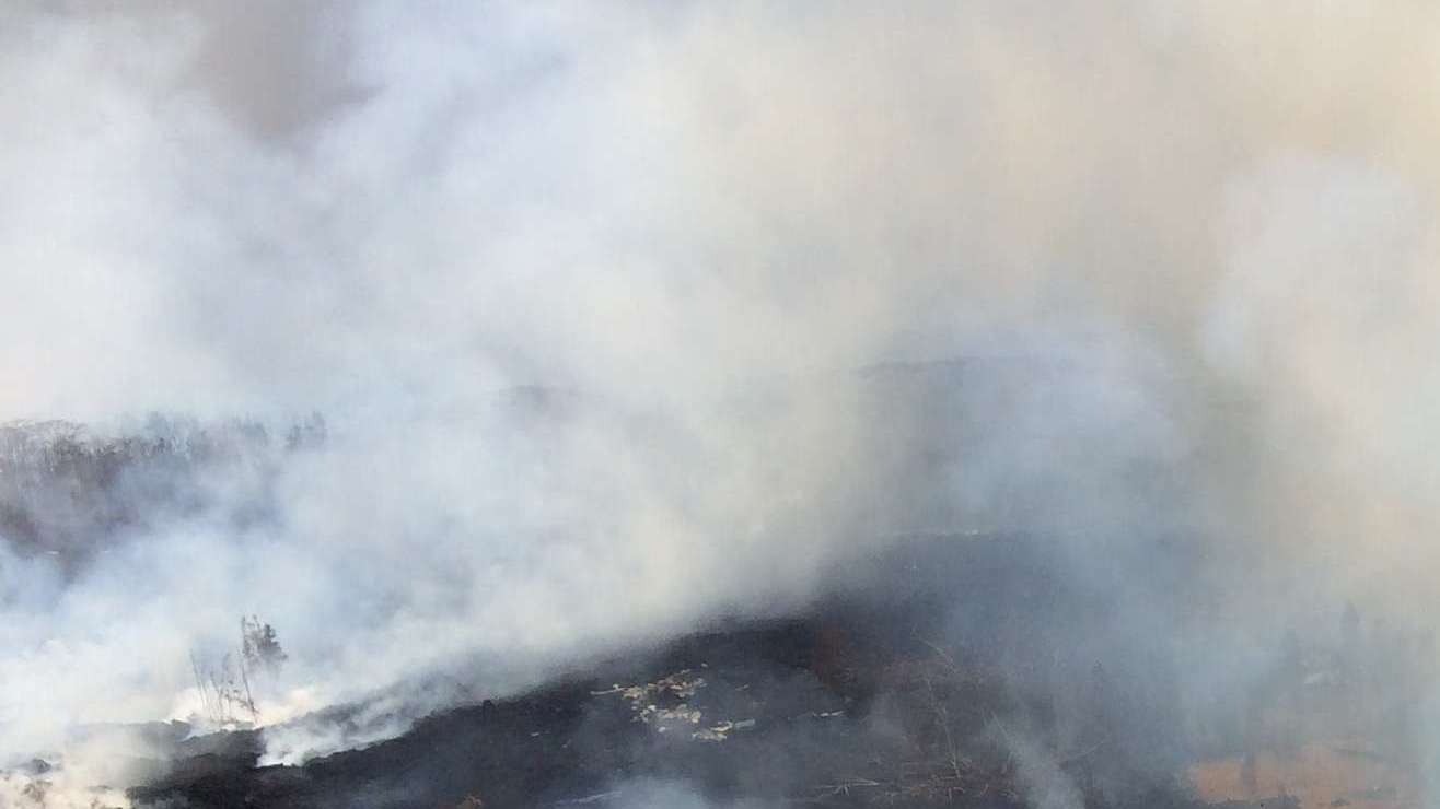 El viernes por la noche, funcionarios de defensa civil dijeron que un flujo de lava en rápido movimiento había cruzado Pohoiki Road y amenazaba un área aislada con al menos 40 viviendas. Posteriormente, helicópteros del condado y de la Guardia Nacional transportaron por aire a cuatro personas y y la lava destruyó cuatro casas.