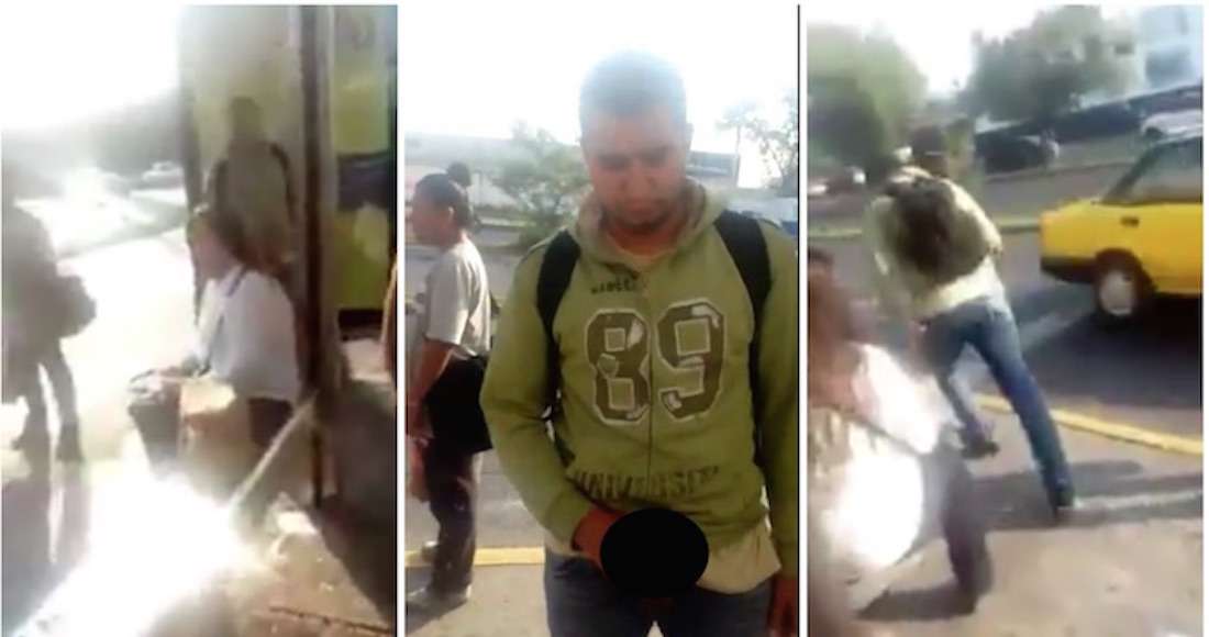 En las imágenes de ocho segundos, se ve a un joven masturbándose a escasos centímetros de una mujer que espera en un parabús. Crédito: (Sin Embargo)