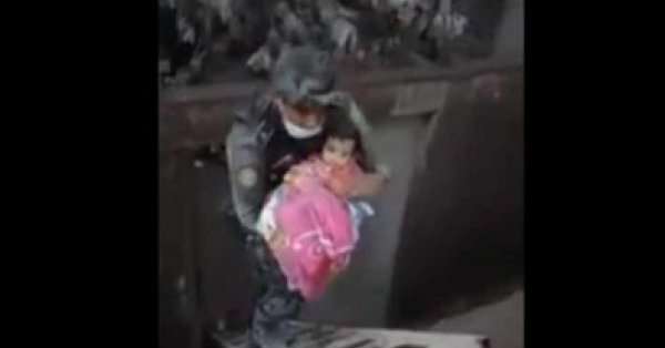 “Tan bonita mi niña”, expresa conmovido otro policía, mientras ve a su compañero llevar entre sus brazos a la pequeña, que fue trasladada a un hospital para su revisión.