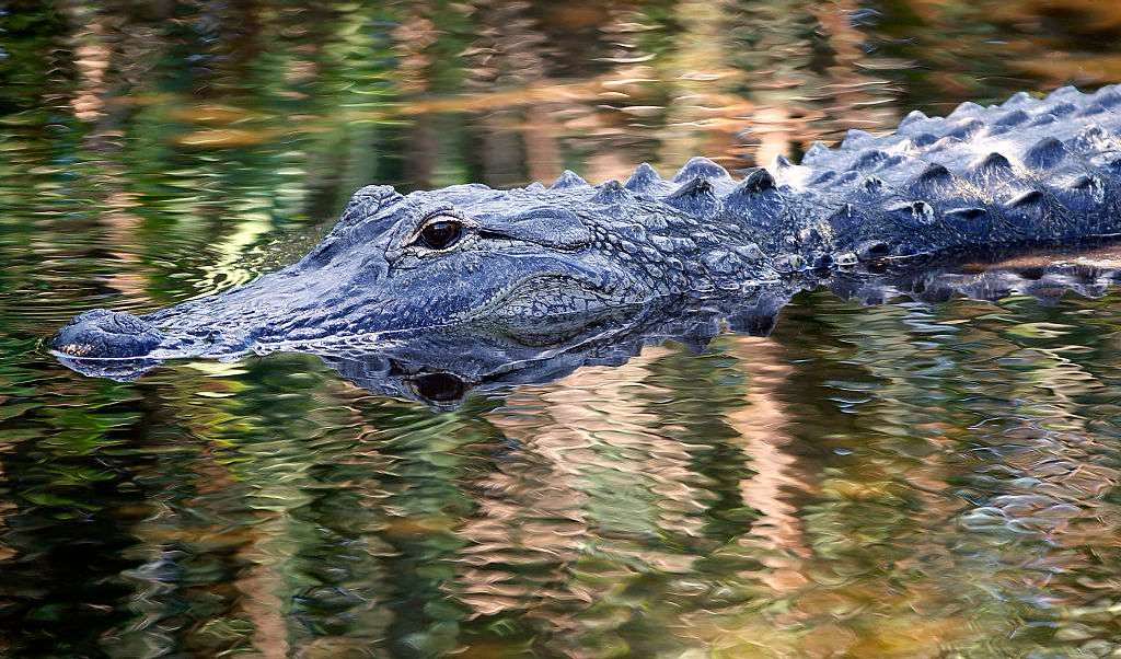 Un cocodrilo nada en las aguas en los humedales de Wakodahatchee en Delray Beach, Florida. Crédito: RHONA WISE/AFP | Getty Images