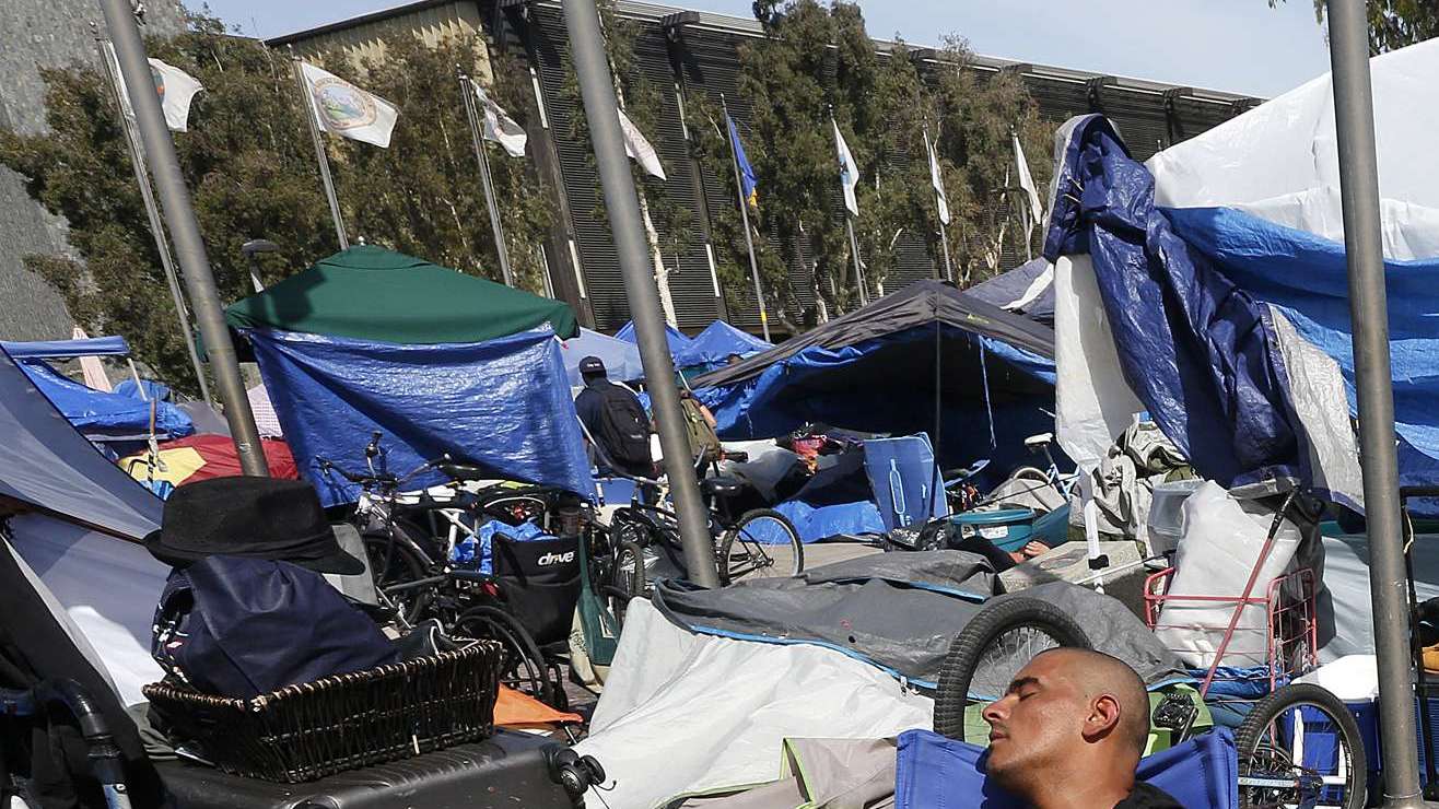 Un campamento de indigentes en Santa Ana. (Aurelia Ventura/La Opinion)