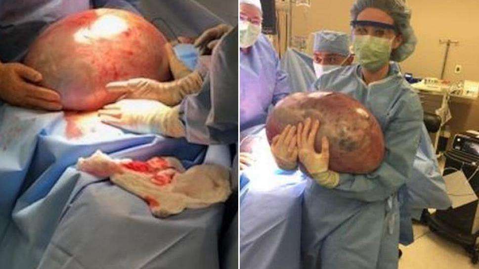 Los médicos le informaron de que la masa probablemente era benigna, pero aún no estaban seguros de qué se trataba. Resultó ser un quiste de 50 libras en su ovario.