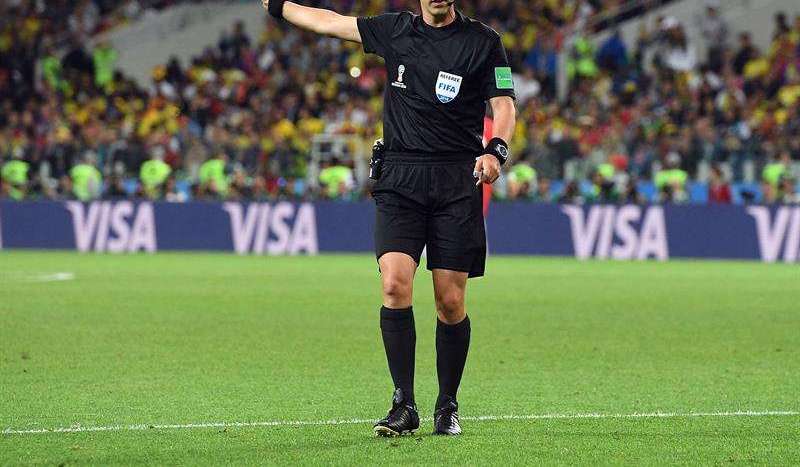 Mark Geiger en el partido de Colombia e Inglaterra. EFE Crédito: EFE