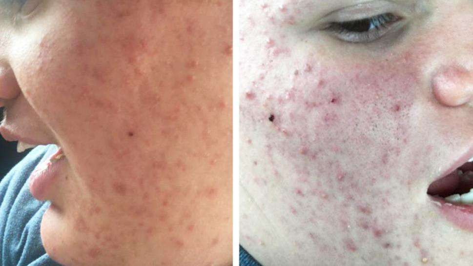 El acné quístico de un adolecente con autismo. Crédito: Reddit/Callie Ross-Smith)