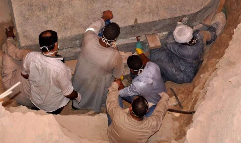 El lugar había sido despejado del personal por miedo de que la tumba pueda liberar vapores tóxicos letales, dijo el periódico estatal egipcio Al-Ahram.