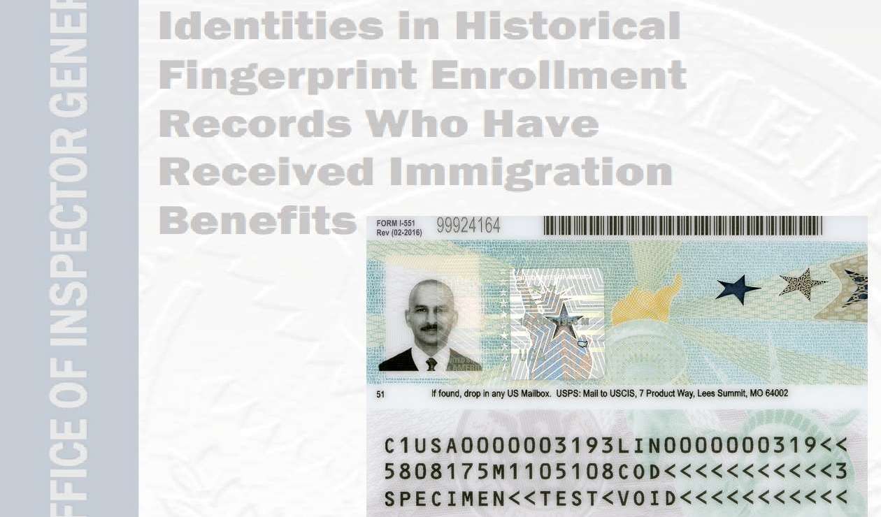 En el informe “Personas con múltiples identidades en registros históricos de inscripción de huellas digitales que han recibido beneficios de inmigración”, la Oficina del Inspector General (OIG) del Departamento de Seguridad Nacional (DHS) indica la revisión de huellas dactilares que fueron dadas de altas en el nuevo Sistema de Identificación Biométrica Automatizada (IDENT, por sus siglas en inglés) para inmigrantes.