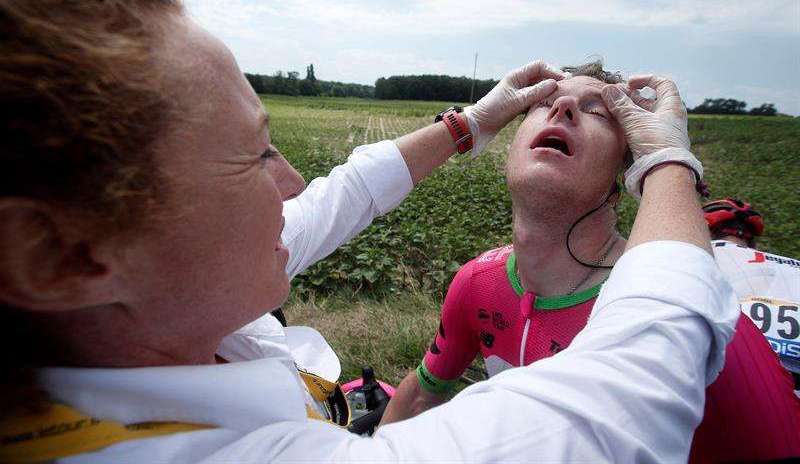 El ciclista australiano Simon Clarke fue uno de los afectados por el gas pimienta Crédito: EFE