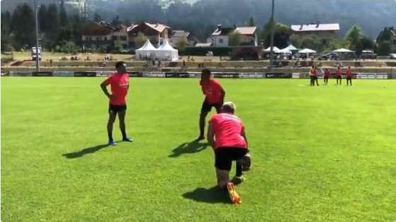 El delantero mexicano del Eintracht Frankfurt, Marco Fabián, sorprendió a sus compañeros de equipo al cambiar el esférico por el ovoide y realizar una patada diga de un auténtico gol de campo en la NFL.