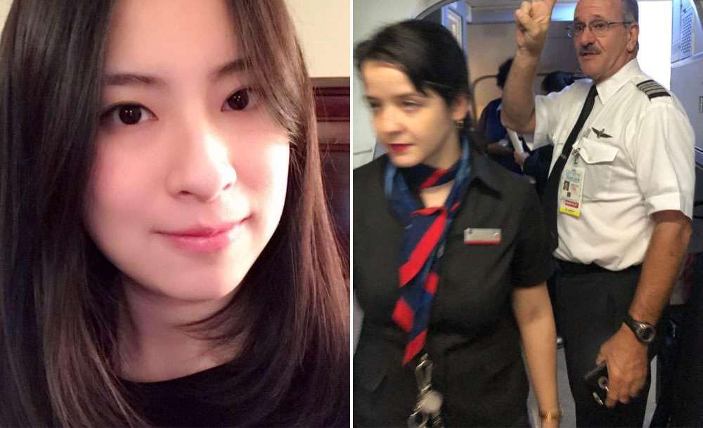 Jingjing Hu fue retirada del avión de American Airlines. Crédito: Twitter, Jay TANG