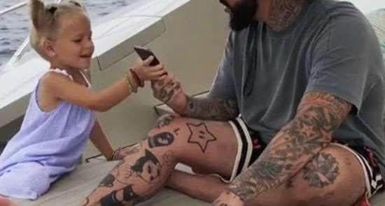 La niña primero trató de hablar con su padre, y Timati le dio una breve respuesta, probablemente diciéndole que se callara mientras él continuaba hablando por teléfono.