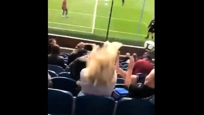 Aficionada se distrae en las tribunas y recibe terrible balonazo