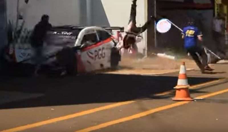 El choque provocó que el auto de Mayrink saliera despedido a gran velocidad en dirección hacia donde estaban los mecánicos, arrollando a varios de ellos de manera violenta.