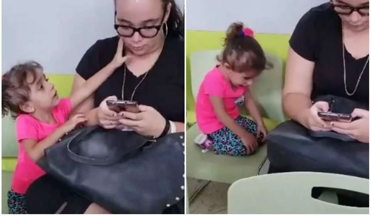 Ejemplo claro de esto se puede apreciar en un video que circula por Internet, el cual ha generado gran indignación, ya que se aprecia claramente cómo una pequeña niña hace de todo con tal de llamar la atención de su madre, quien está sentada justamente al lado de ella, pero quien no puede quitarle la vista a la pantalla de su smartphone.