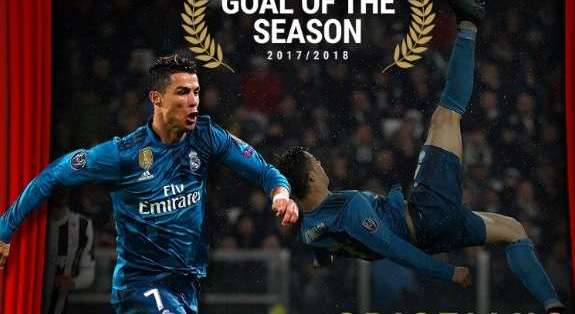 El tanto de chilena de Cristiano Ronaldo cuando militaba en el Real Madrid ante su actual equipo, el Juventus, en la ida de los cuartos de final de la Liga de Campeones, ha sido elegido mejor jugador de la temporada por los usuarios de la web de la UEFA.