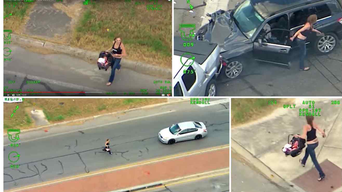 La frenética persecución de la Policía a madre con bebé en cargador