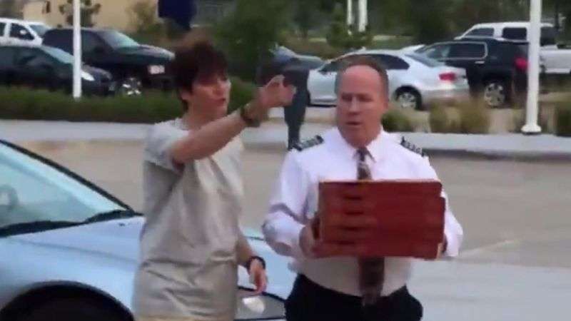 Un video subido a Twitter muestra el momento en el que el capitán del avión, Jeff Raines, entrega las cajas a los pasajeros.