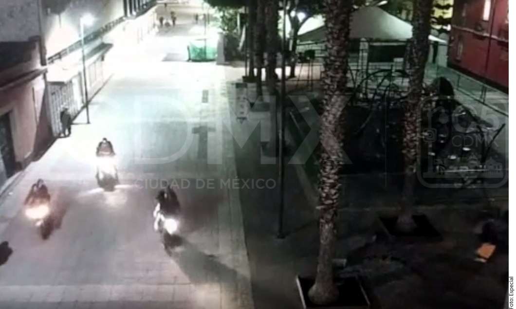 MÉXICO -Cámaras del videovigilancia de la Ciudad de México, denominadas C5 captaron el momento en que los responsables del ataque que dejó cinco personas muertas en Garibaldi escapan en motocicletas.