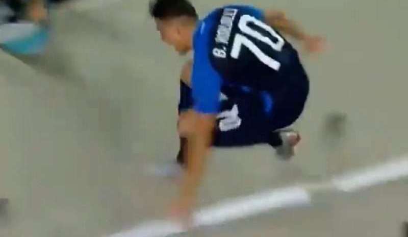 Para su fortuna el jugador sólo sufrió algunos golpes y pudo subir a la cancha con la ayuda de sus compañeros.